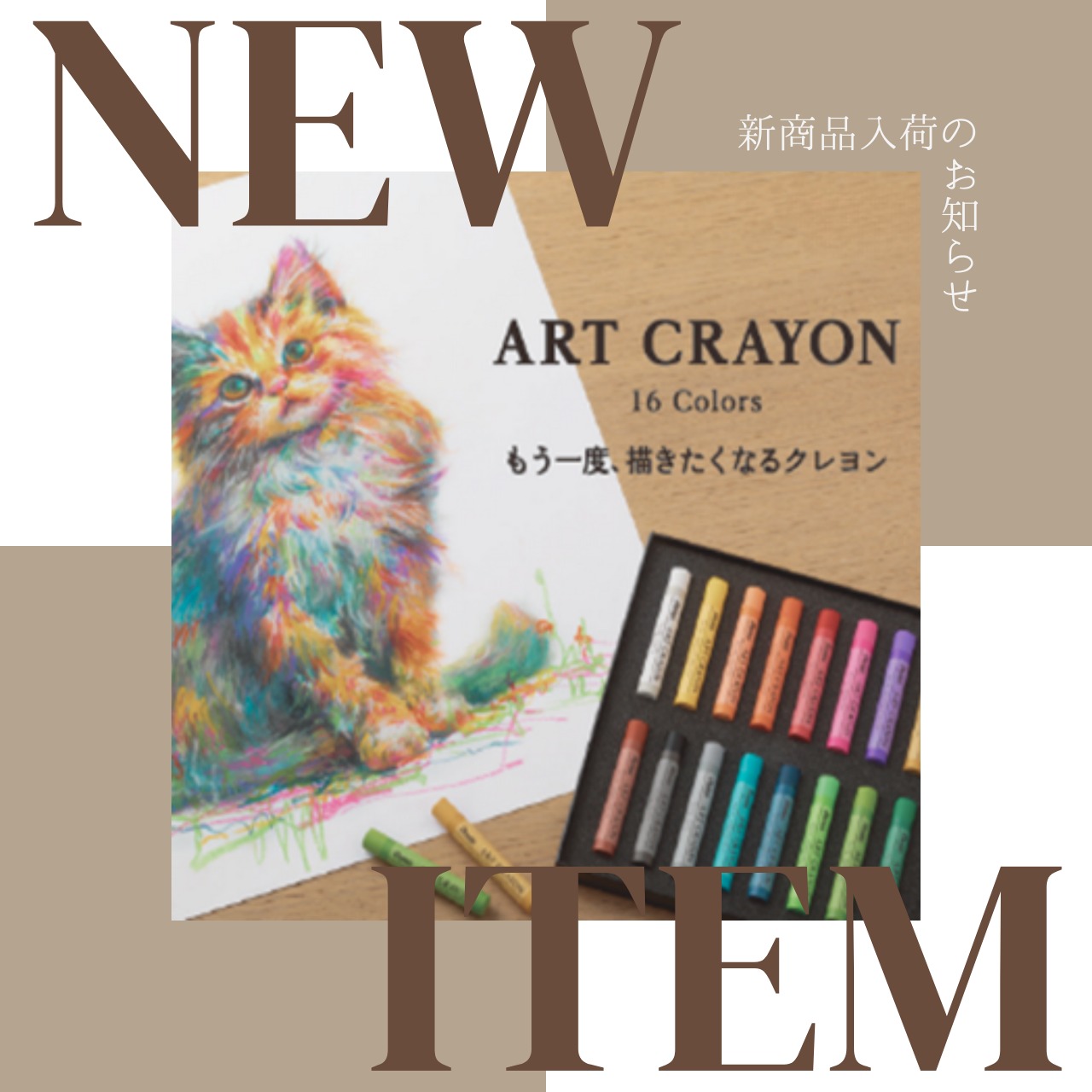 新たに明るい中間色8色を加え、表現に幅がさらに広がる。全16色の『アートクレヨン』誕生。